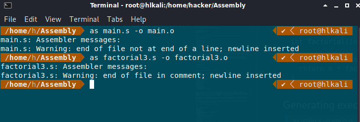as factorial.s -o factorial.o