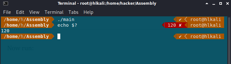 Finally, we increase the stack pointer (because we no longer need the function parameters stored in the stack, we can safely override them to prevent memory leaks) and move the function return (the function return is, by convention, always stored in the rax register) to the rbx so we can display it after the program has been executed (through the echo $? command)