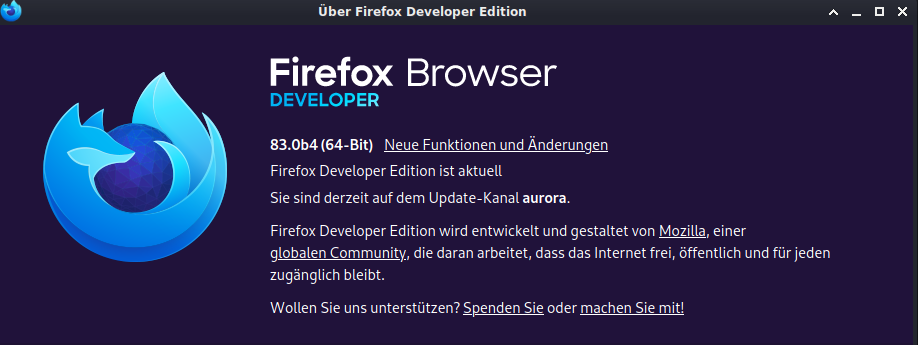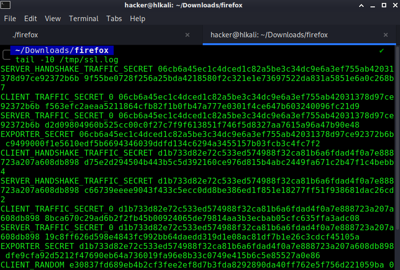 download firefox developer edition from https://www.mozilla.org/de/firefox/developer/ cd /home/hacker/Download bunzip2 firefox-83.0b3.tar.bz2 tar -xvf firefox-83.0b3.tar cd firefox export SSLKEYLOGFILE=/tmp/ssl.log ./firefox