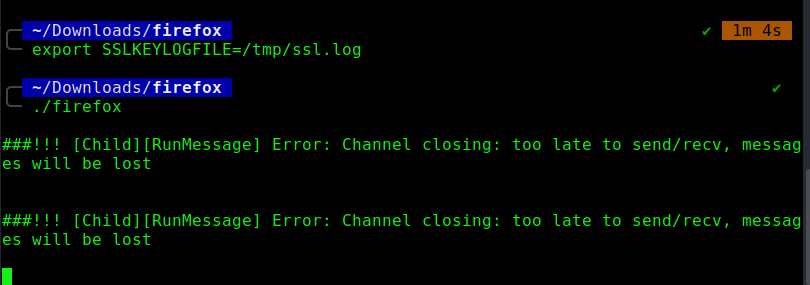 After setting the export SSLKeylogfile command export SSLKEYLOGFILE=/tmp/ssl.log in the same terminal were I did start firefox, the browser did open, but no ssl.log file were written.