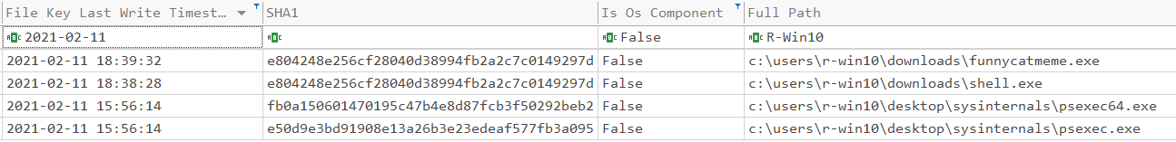 Inside Time Explorer I load the *Amcache_UnassociatedFileEntries.csv file and set the following filters: