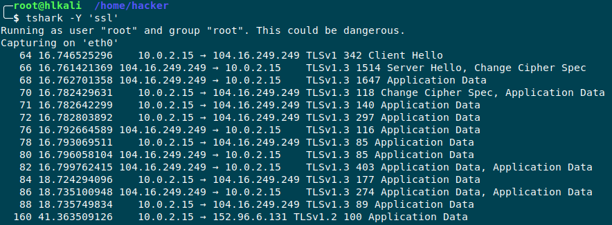 tshark -i eth0 -Y ’ssl‘