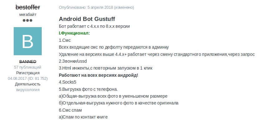Researchers uncovered a malware known as „Gustuff“. The Gustuff malware is being advertised in the Exploit.in forum as a botnet for rent.