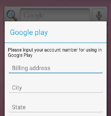 This is a possible screen overlay of google playstore to trick the victim to enter sensitive informations like credit card numbers.