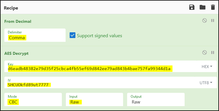 {'option':'UTF8','string':'SHCUOkfd89ut7777'},'CBC','Raw','Raw',{'option':'Hex','string':''},{'option':'Hex','string':''})
