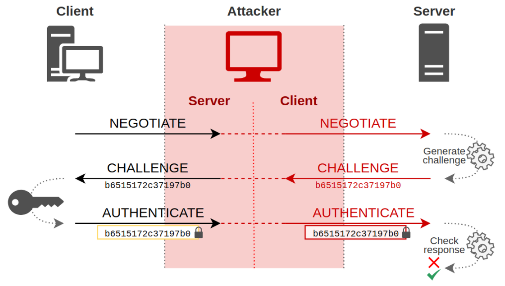 1. listen to the NTLM authentication negotiation messages from victim (man-in-the-middle position between a client and a server)