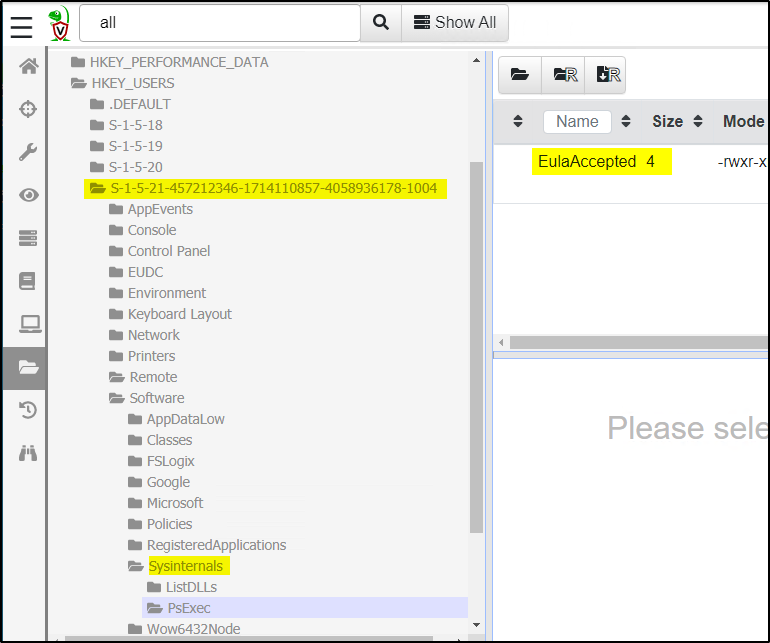 Note: Sysinternals tools create a new registry key in the HKCU\SOFTWARE\Sysinternals
