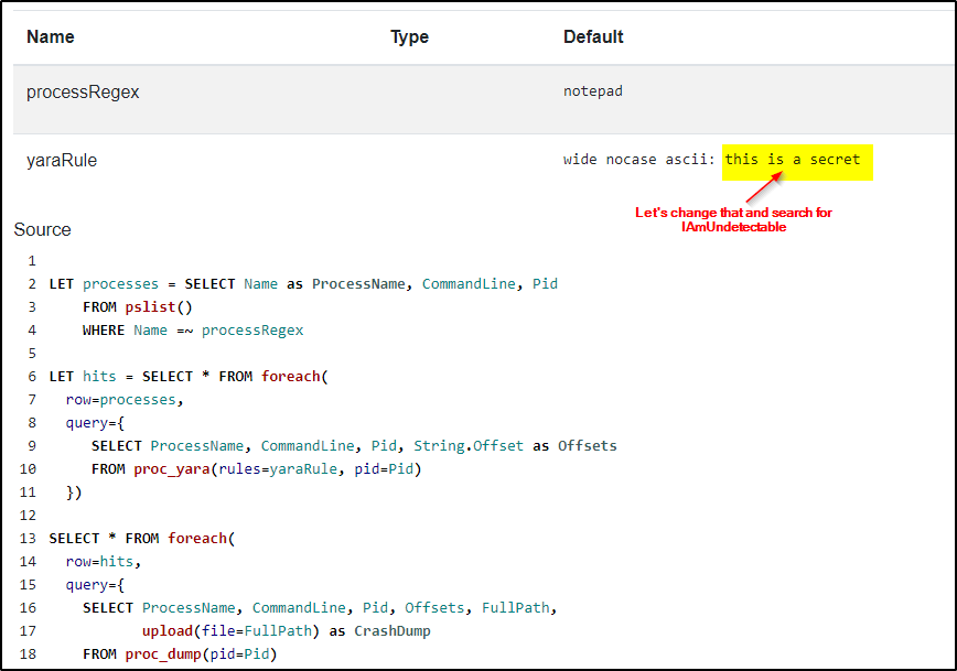 You know that a malicious binary is running on Forensic. All that is known about the process is that it contains the string IAmUndetectable. From that, the following YARA rule can be created: