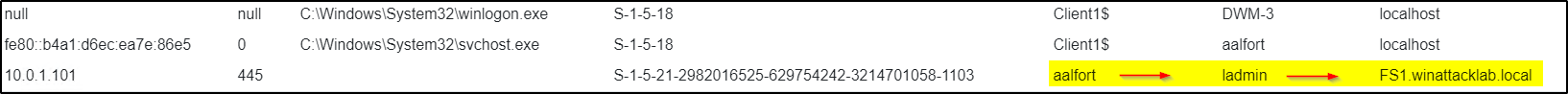 not there. This can be because the attacker deleted these entries to hide his activities. - Search for EventID 4624On the destination side another Event 4624 will be logged. For the further investigation we can use the same artifacte and modify it by replacing the